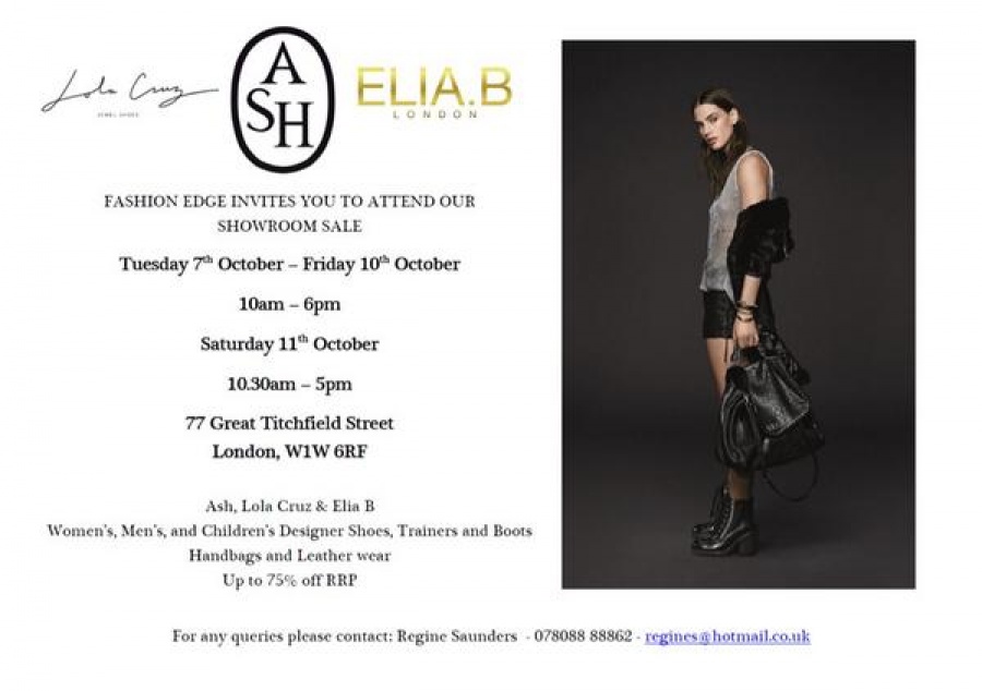Fashion Edge showroom sample sale.You'll find woman's, men's and children's designer shoes. trainers and boots. Also handbags and leather wear. Up to 75% off RRP.