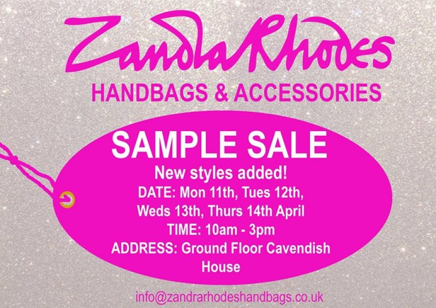Zandra Rhodes handbags and accessories sample sale. New styles added.