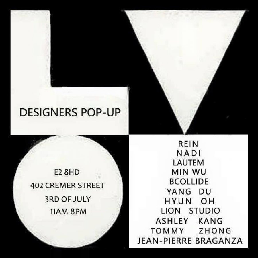 Popup sale with designers such as Rein, Nadi, Lautem, Min Wu, BCollide, Yang Du, Hyun Oh, Lion Studio, Ashley Kang, Tommy Zhong, Jean-Pierre Braganza