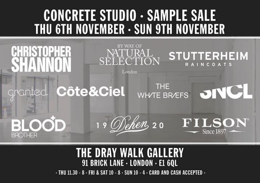 The Concrete Studio Sample Sale returns in November at The Dray Walk Gallery, this time in collaboration with London-based menswear label Blood Brother O+.