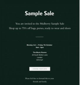 Up to 75% off Mulberry items such as bags, purses, ready to wear and shoes.