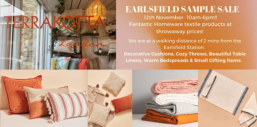 Take great deals on decorative cushions, throws, table linens, and small gift items at the Terrakotta London Sample Sale.
