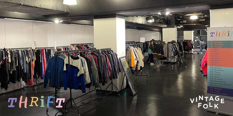 Find great deals on branded vintage, sweatshirts, jackets, jerseys, shirts, t-shirts, jeans, knitwear, American vintage, trousers, jeans, dresses, blouses, Y2K, workwear, and accessories at the Newcastle SU Vintage Folk Thrift Sale.