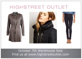The Highstreet Outlet sale features surplus and overstock clothing items from premium UK brands. Prices range from £5 to £40
