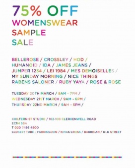 Take up tp 75% off on women's apparel and accessories at the Chiltern Street Studio Womenswear Sample Sale.