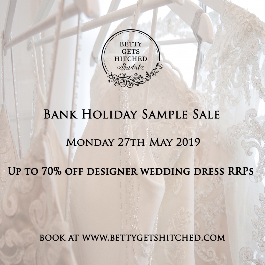We are holding a Bank Holiday sample sale on Monday the 27th of May – up to 70% off all designer wedding dress RRPs. The perfect opportunity to find your dream dress for less! Please read our sample sale information and advice below: